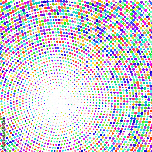 Multicolored dots in a circle on a white background