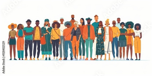 Multiethnic multicultural group of diversity people standing together illustration isolated, Generative AI