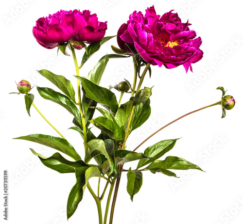 Multiple red peony flower isolated on white background