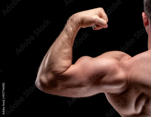 Muscular arm flexing, representing physical strength, power, and fitness.