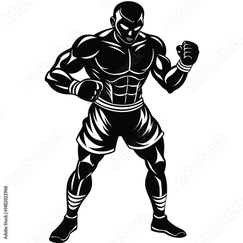 Muscular Boxer Silhouette Vector – Strong Fighter Standing Pose Illustration