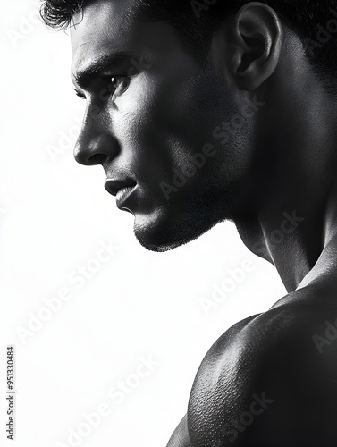 Muscular Male Model in Dramatic Black and White Portrait
