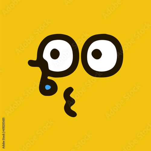 Music lover emoticon in doodle style. Cartoon face expressions isolated on yellow background