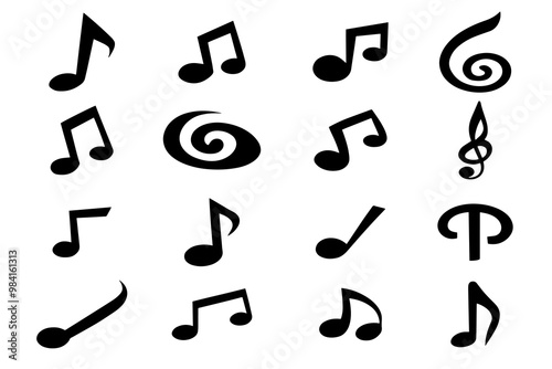 Music Note Icon Set – Minimalist Black Line Art of Musical Symbols and Treble Clefs for Audio, Song, and Music Projects.