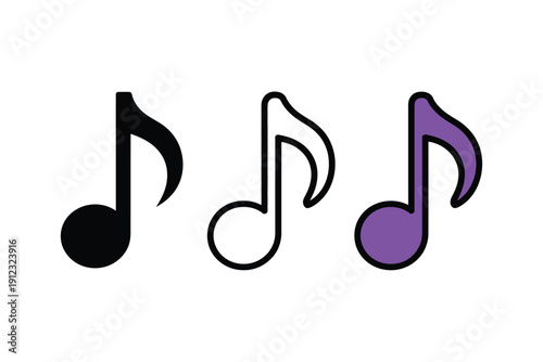 Musical eighth notes display three styles: solid black, outline, and colored.