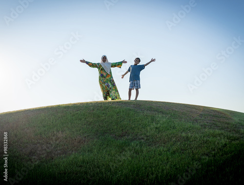 Muslim woman and son silhouette