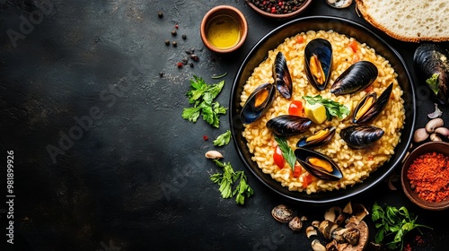 Mussels risotto main course concept.