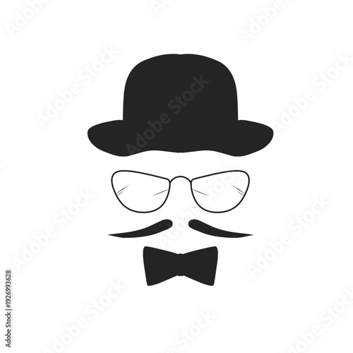 Mustache and Glasses with hat. vector Illustration