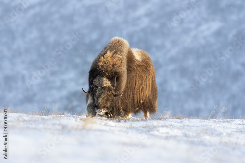 Musx Ox in Dovrefjell National Park in a snowy landscape