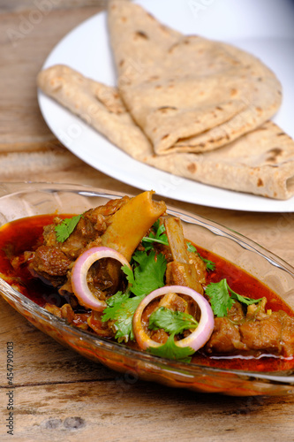 Mutton curry or meat dish with India style bread