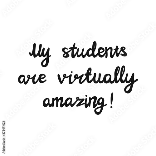 My students are virtually amazing. Handwritten education quote. Isolated on white background. Vector stock illustration.