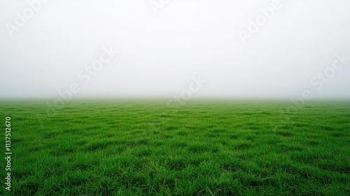 Mysterious fog idea. A serene green field covered in fog, creating a tranquil and peaceful atmosphere.