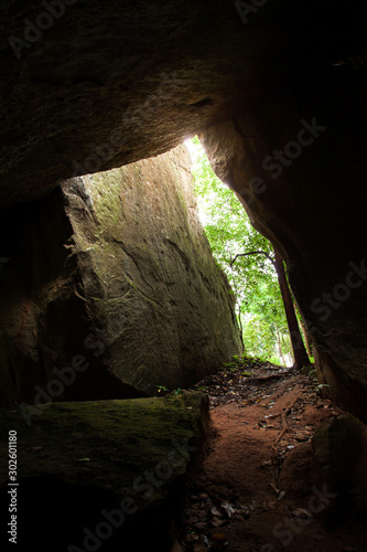 Mystic cave in an ancient forest.