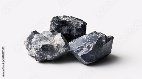 Mystical Black Crystal Cluster: Raw Mineral Stone on White Background