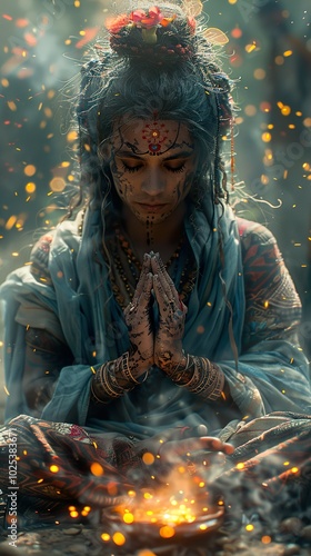 Mystical Woman in Prayer with Fire