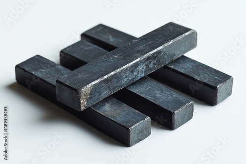 N52 ultra-thin rectangular ferrite magnets in various sizes and shapes arranged on white background, strong magnetic elements for industrial or scientific use