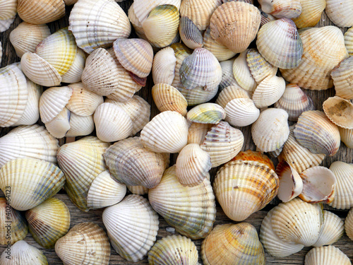 Nahaufnahme von Muschel-Schalen unterschiedlicher Farbe und Größe