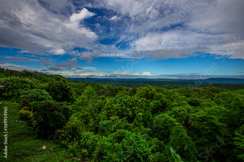 Natural background, high angle from the high mountains that can see the scenery around, the wind blows through the cool, blurred of traveling, the integrity of the moist forest.
