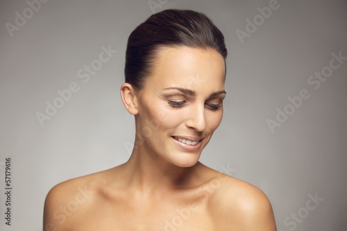 Natural beauty posing on gray background