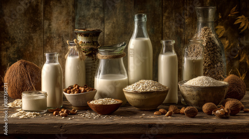 Natural dairy food with milk bottles