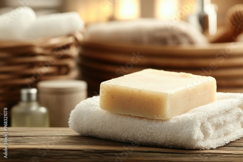 Natural Soap on Towel in Spa Setting