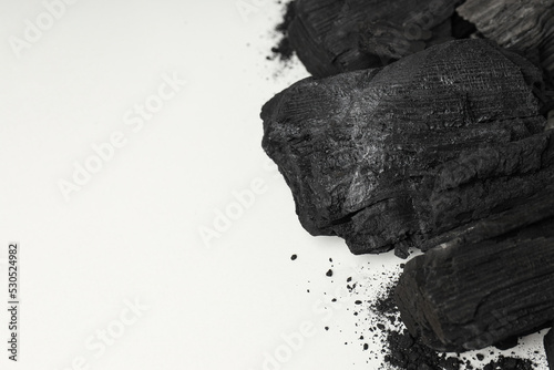 Natural wood or hardwood charcoal, space for text