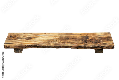 Natural wooden shelf crafted from reclaimed materials, showcasing rustic charm and unique grain patterns, perfect for any cozy interior isolated on transparent background