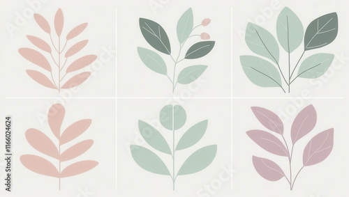 Nature inspired leaf patterns botanical illustrations minimalist design indoor aesthetic