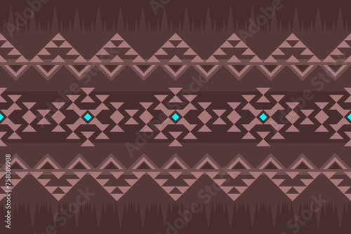 Navajo Pattern Fabric Design Color Dark Brown Modern Neon Blue Light Concept Triangle illustration Print Clothing Pants Shirts Wallpaper Ethnic Multipurpose cloth Textile industry and more.