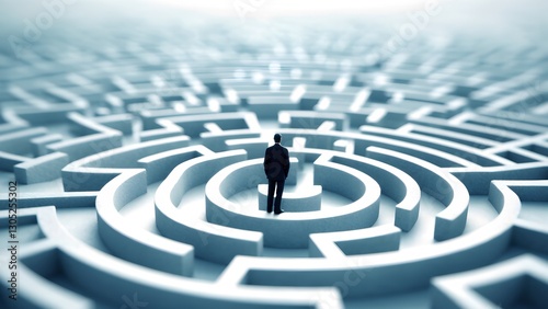 Navigating complex decisions businessman in a maze abstract concept digital environment aerial view problem-solving