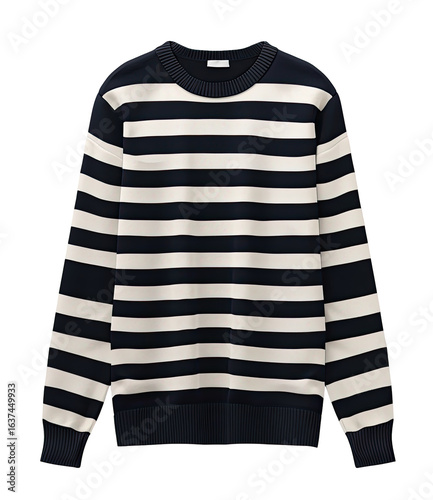 Navy and cream striped crew neck sweater (4)