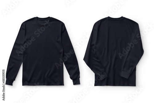 Navy long sleeve t-shirt mockup, with front and back views Isolated on white background