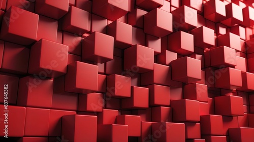 Neatly Aligned Multisized Cube Wall. Red, Modern Tech Background. 3D Render.