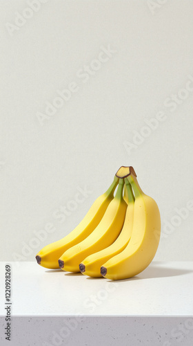 Neatly arranged bunch of ripe bananas on kitchen counter