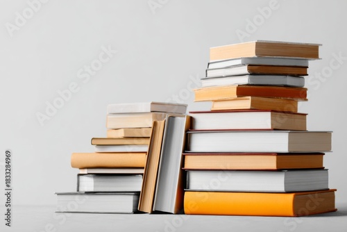 Neatly Arranged Stack of Books on a White Backdrop for Creative and Educational Use