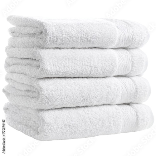 Neatly stacked plush white bath towels clean and soft for luxurious comfort