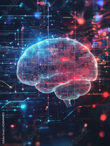 Neon Abstract Brain Network with Futuristic Digital Connections for Innovative development artificial intelligence technology Concept.