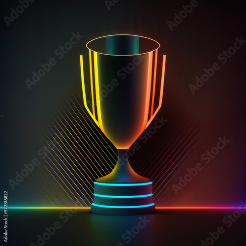 Neon abstract vector line trophy on dark background, generative ai