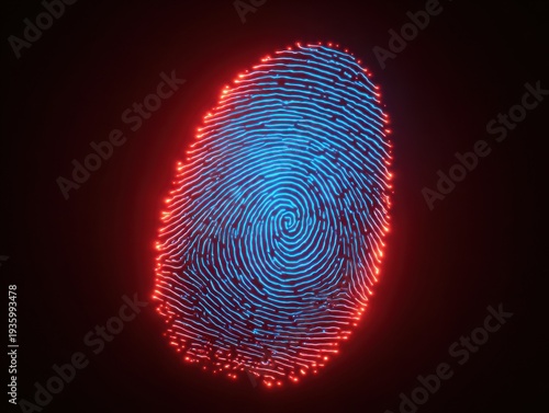 neon blue fingerprint scan effect isolated on a red background