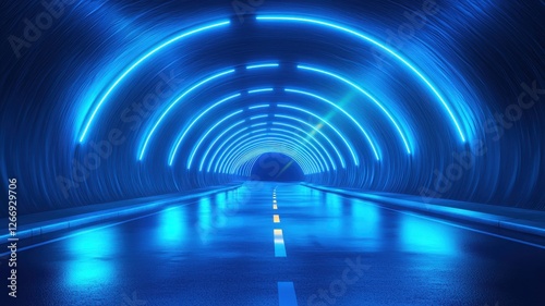 Neon Blue Tunnel with Reflective Surface and Futuristic Vibe