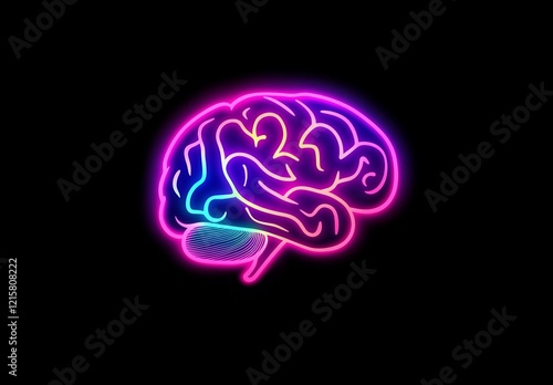Neon brain illustration on black background.