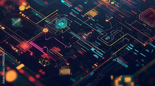 Neon Circuit Board Data Flow Technology