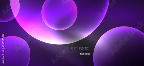 Neon ellipses abstract backgrounds. Shiny bright round shapes glowing in the dark. Vector futuristic illustrations for covers, banners, flyers and posters and other