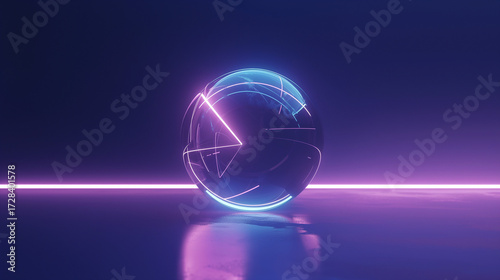 Neon Glass Sphere on Purple Blue Gradient Background with Minimalist Composition, Technology background
