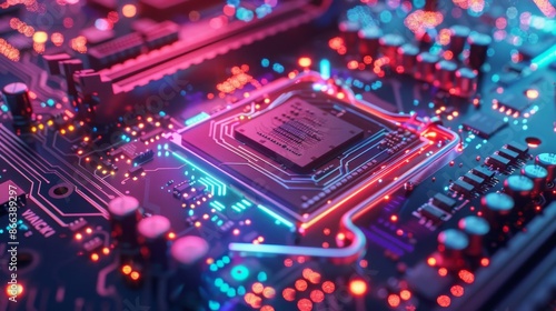 Neon Glow Circuit Board Closeup