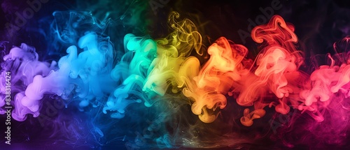 Neon Glow Rainbow smoke, negative space, isolated on black background, advertising photoshoot, pride month LGBTQIA theme
