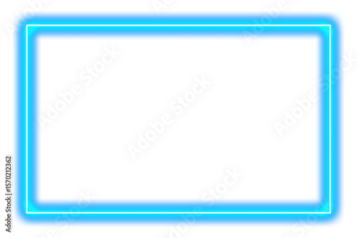 Neon glowing blue rectangle frame with inner glow isolated on transparent background.