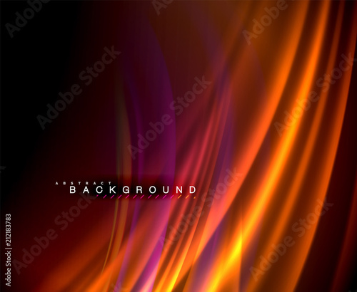 Neon glowing wave, magic energy and light motion background. Vector wallpaper template
