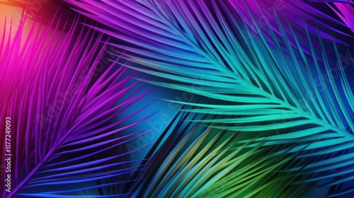Neon gradient palm leaves featuring a bold mix of bright turquoise, magenta,