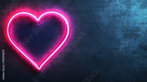 Neon heart sign glowing on a dark background.